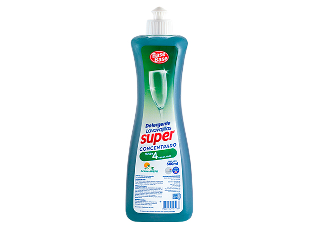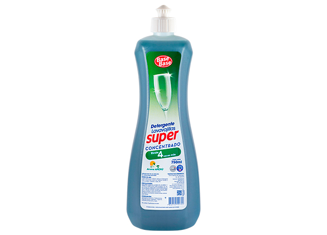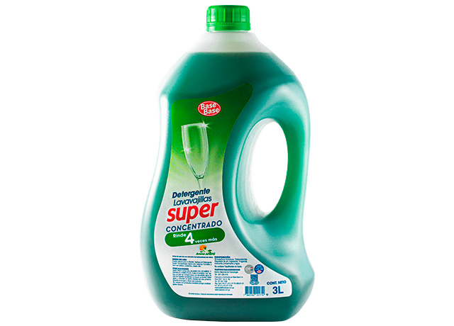 El Detergente Super Concentrado Base Base, brinda mayor rendimiento, rinde 4 veces más, limpieza profunda, acción desengrasante y brillo en todo tipo de vajillas y utensilios. Fórmula con pH neutro que no daña las manos. Producto biodegradable.